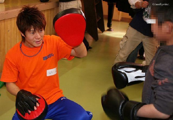 ボクシングセッションをしたので、リングに上がる小川の姿は、