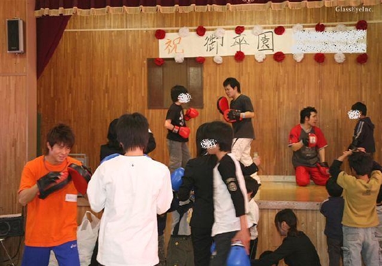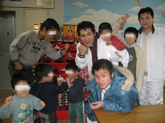ケヤキホームの子ども達は、この日試合をした小川利樹(日本ミニマム級6位)と